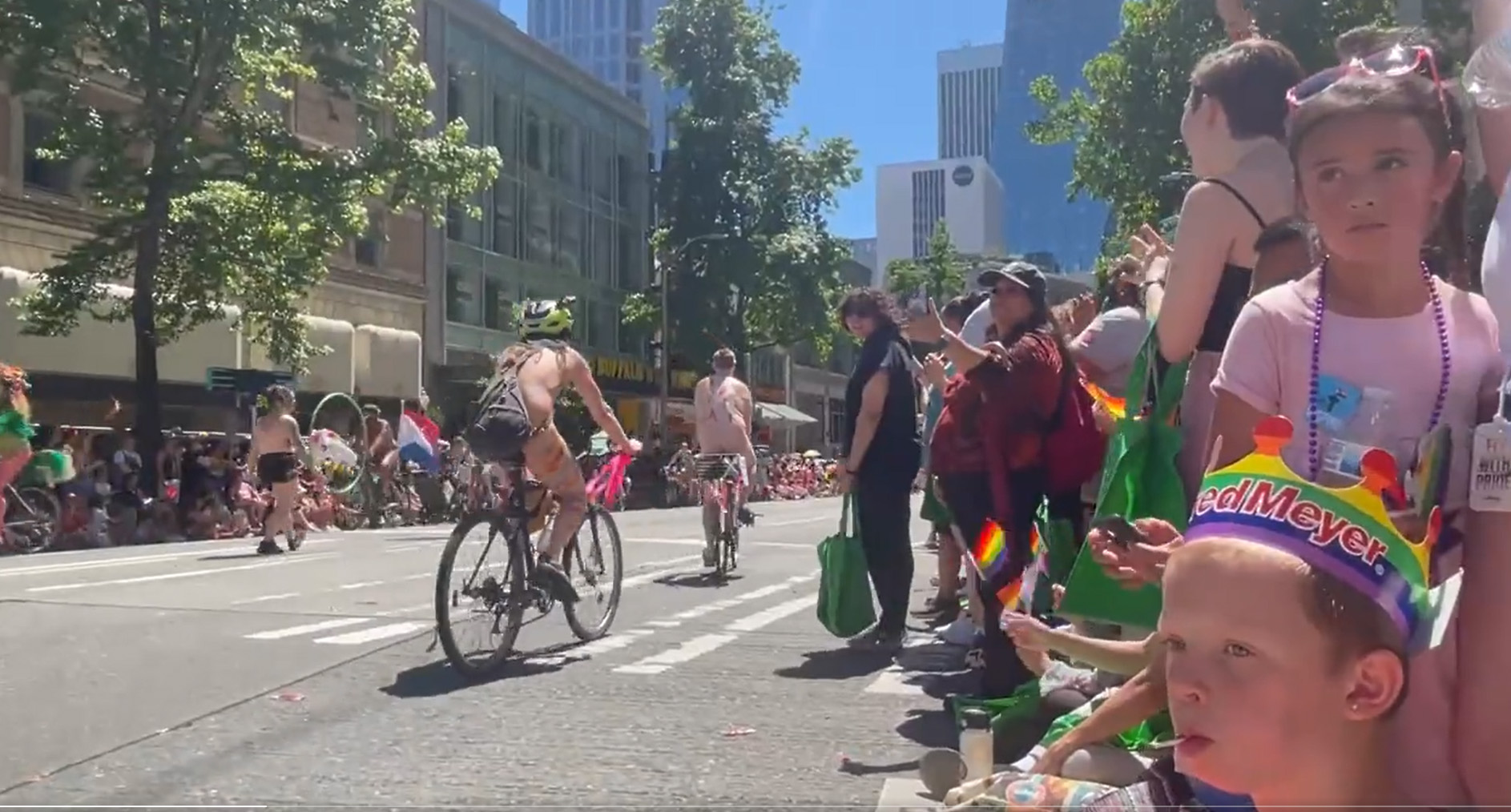 Ежегодните гей-паради в американските градове редовно парадират голи дегенерати пред малки деца. Ето пример от гей-парада в Сиатъл през юни 2022 г. (В статията има и видео.)