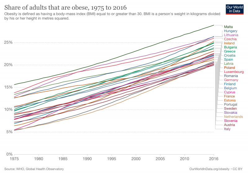 Затлъстяване в Европа от 1975 г.
